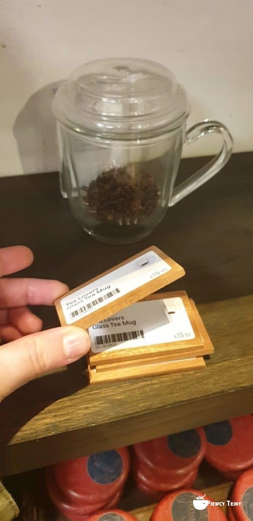 Herbaciarnia podzielona była na dwie strefy. W pierwszej części miała miejsce sprzedaż, trochę jak w sklepie samoobsługowym: klienci mogli przechodzić między regałami z herbatą, wąchać ją, oglądać liście. Gdy decydowali się na zakup sięgali na półkę po jeden ze „znaczników herbaty”, czyli plakietkę z jej nazwą i gramaturą. Potem z tymi plakietkami szli do strefy pakowania, oddawali zamówienie, a na zapleczu przygotowywano opakowania z herbatą.