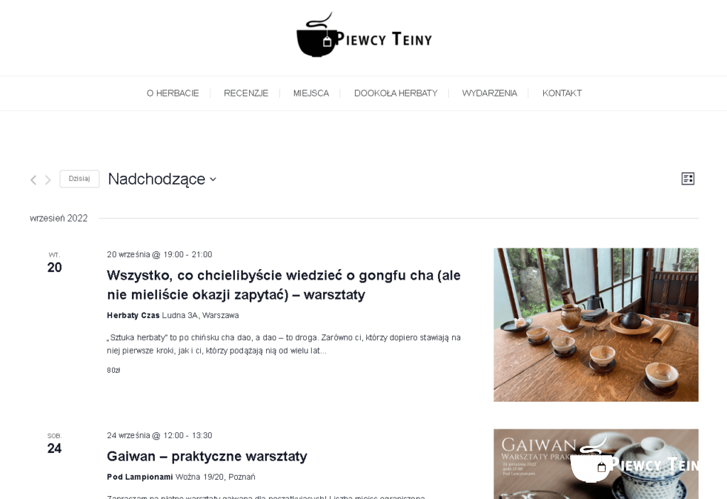 Coraz więcej będzie wydarzeń organizowanych przez Piewców Teiny, głównie w Poznaniu. Będzie można zapisać się na warsztaty prowadzone przeze mnie. Dodatkowo w planach jest samodzielne przetłumaczenie wtyczki do wydarzeń, żeby nie wyświetlały się częściowo anglojęzyczne napisy.